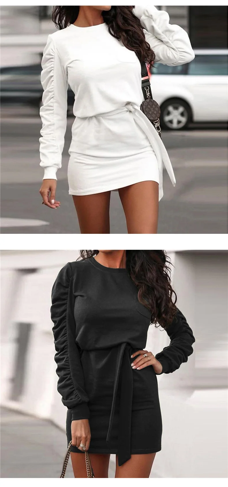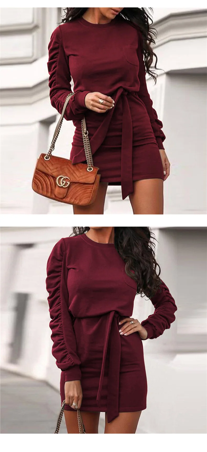 2022 Autumn and Winter Compression Solid Color Long Sleeve High Waist Quick Dry Dresses