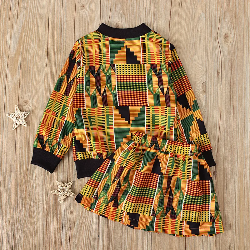 Bohemia style sweat suits sets top and bottom jacket baseball jersey outfit girls kids clothing set