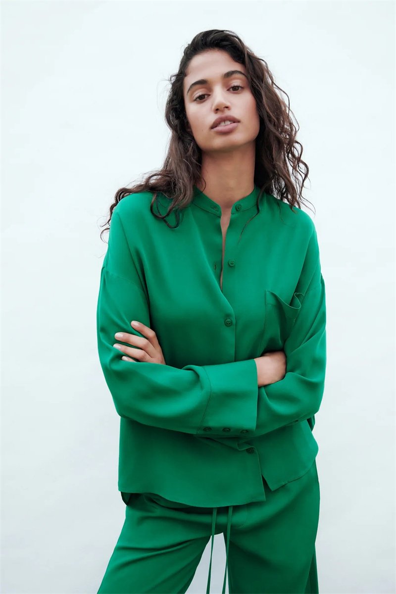 Casual solid loose shirt women two piece pants set