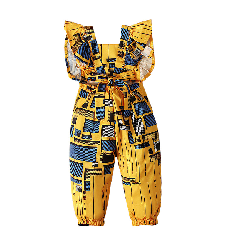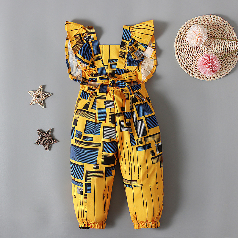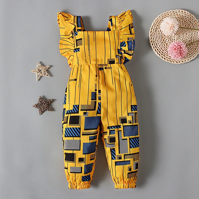 Comfortable African style baby girl summer clothing cartoon flying sleeve jumpsuits kids wear