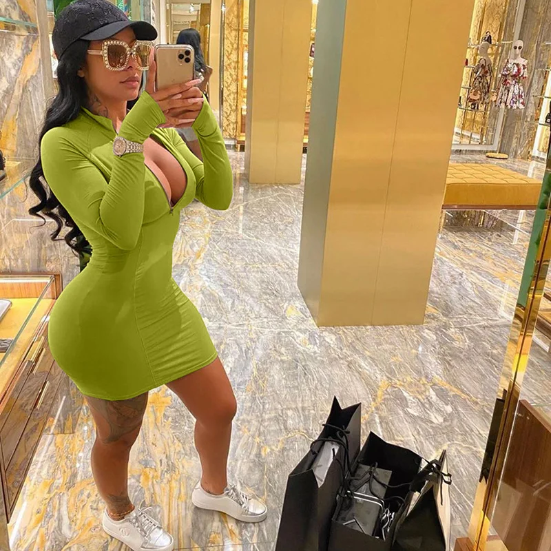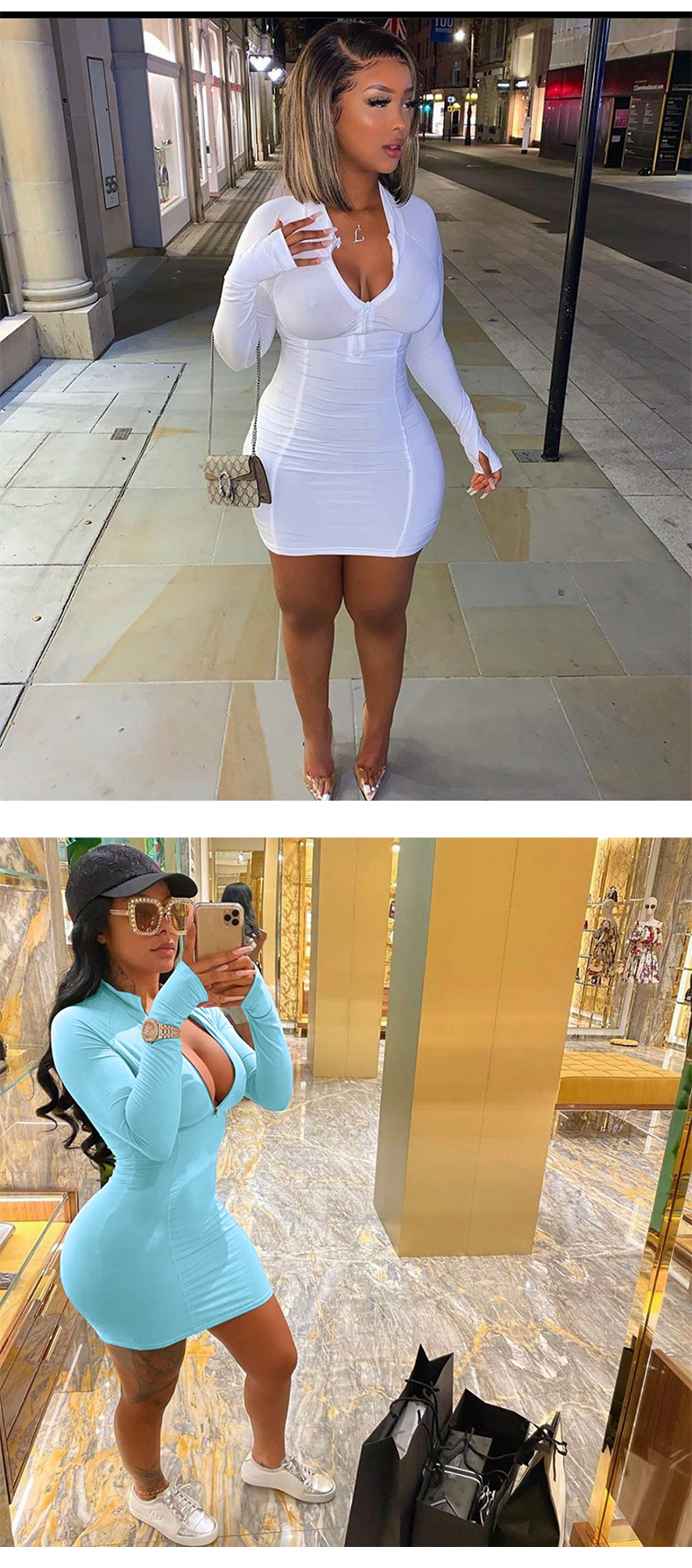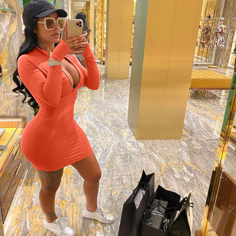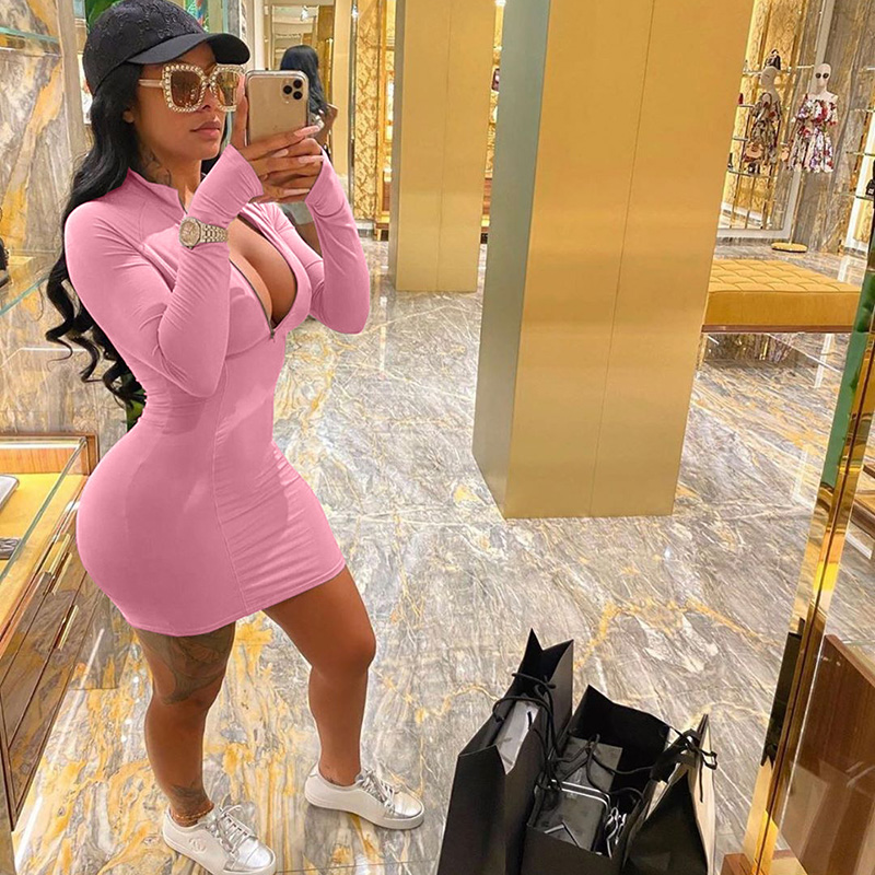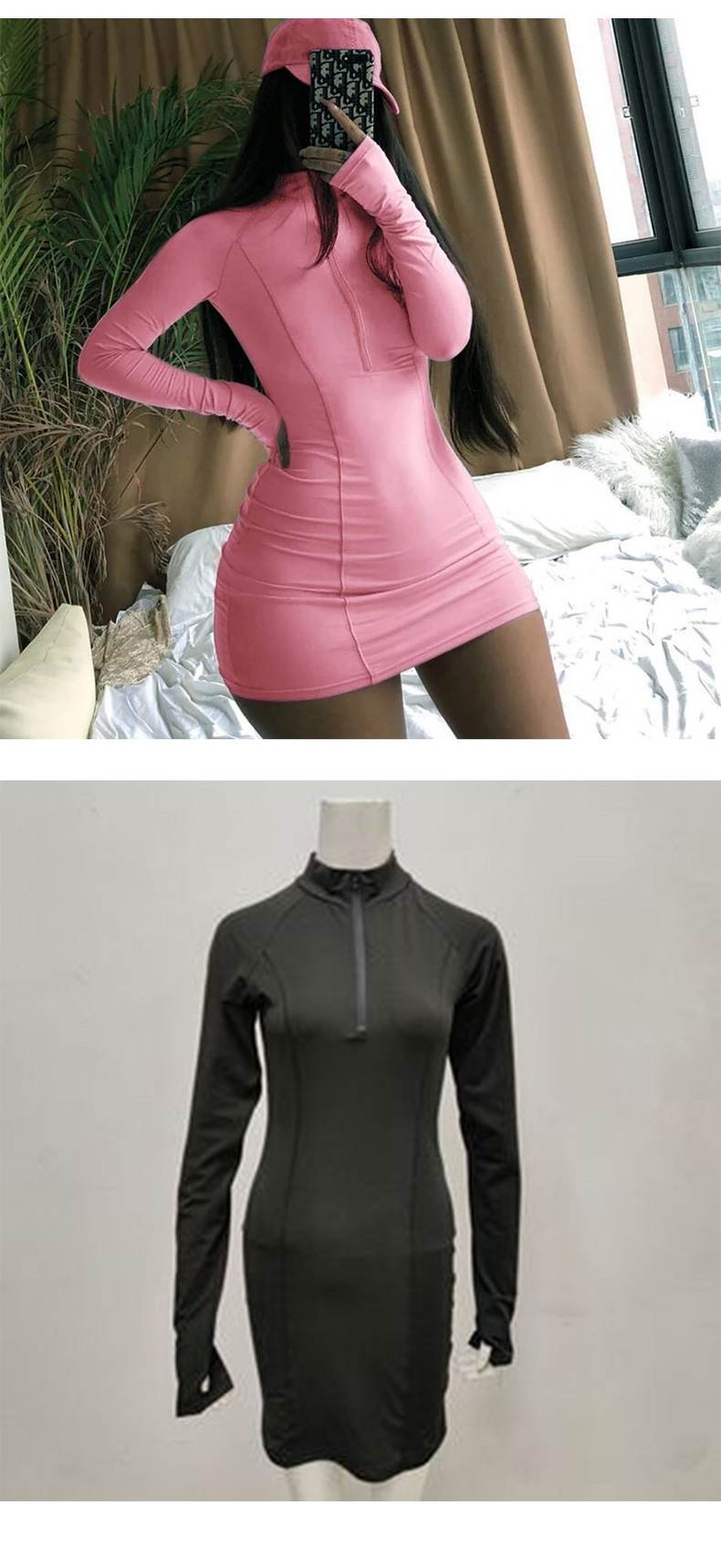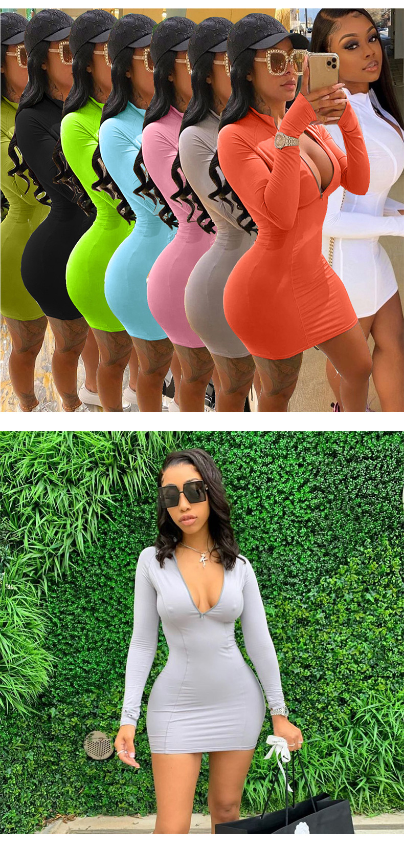 Compression Fashion Pure Color Fall Women Clothes Women Long Sleeve Solid Color Elastic Casual Bodycon Dresses
