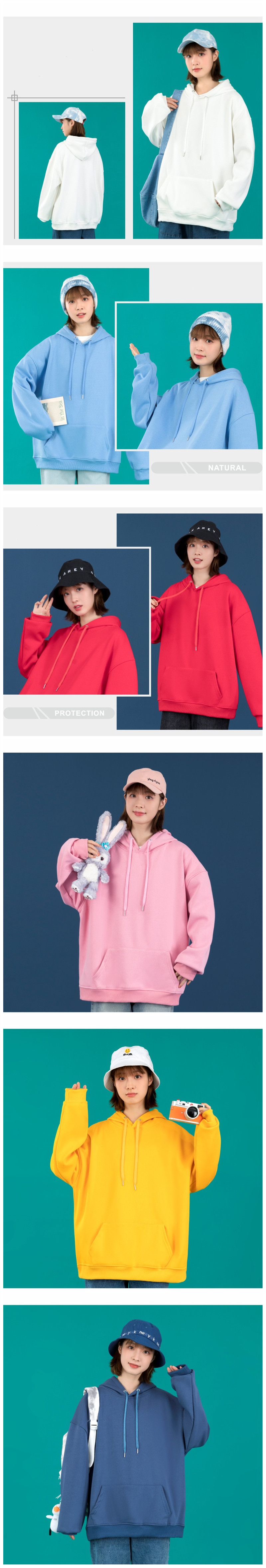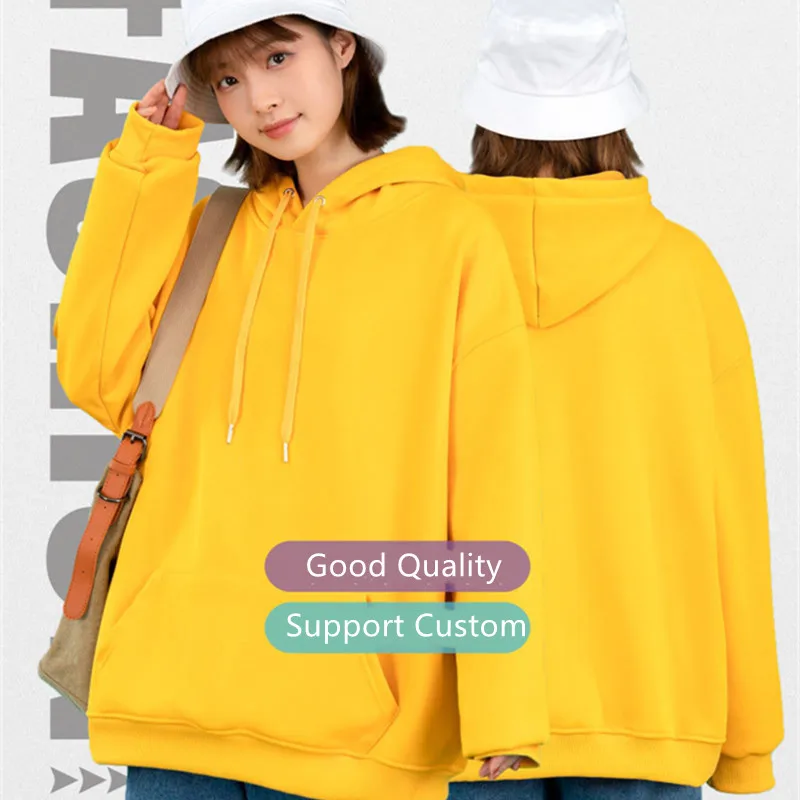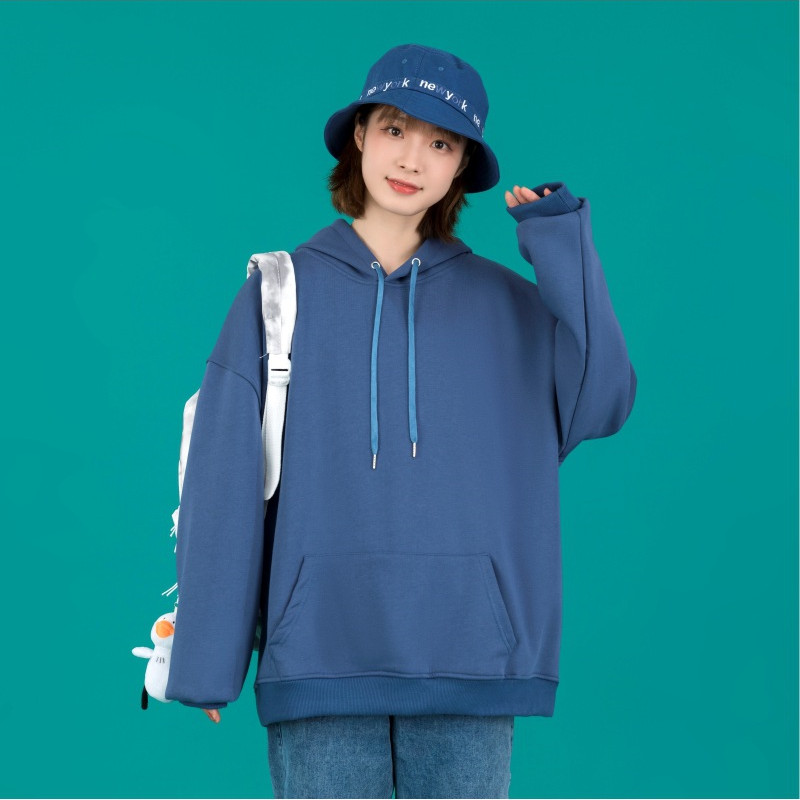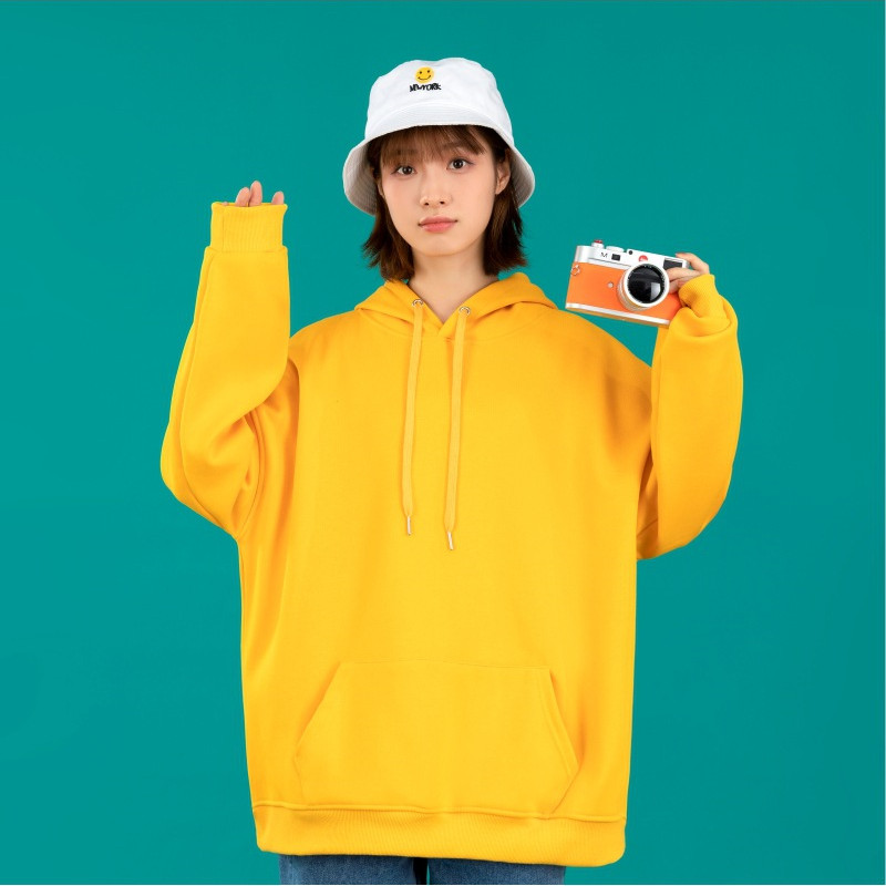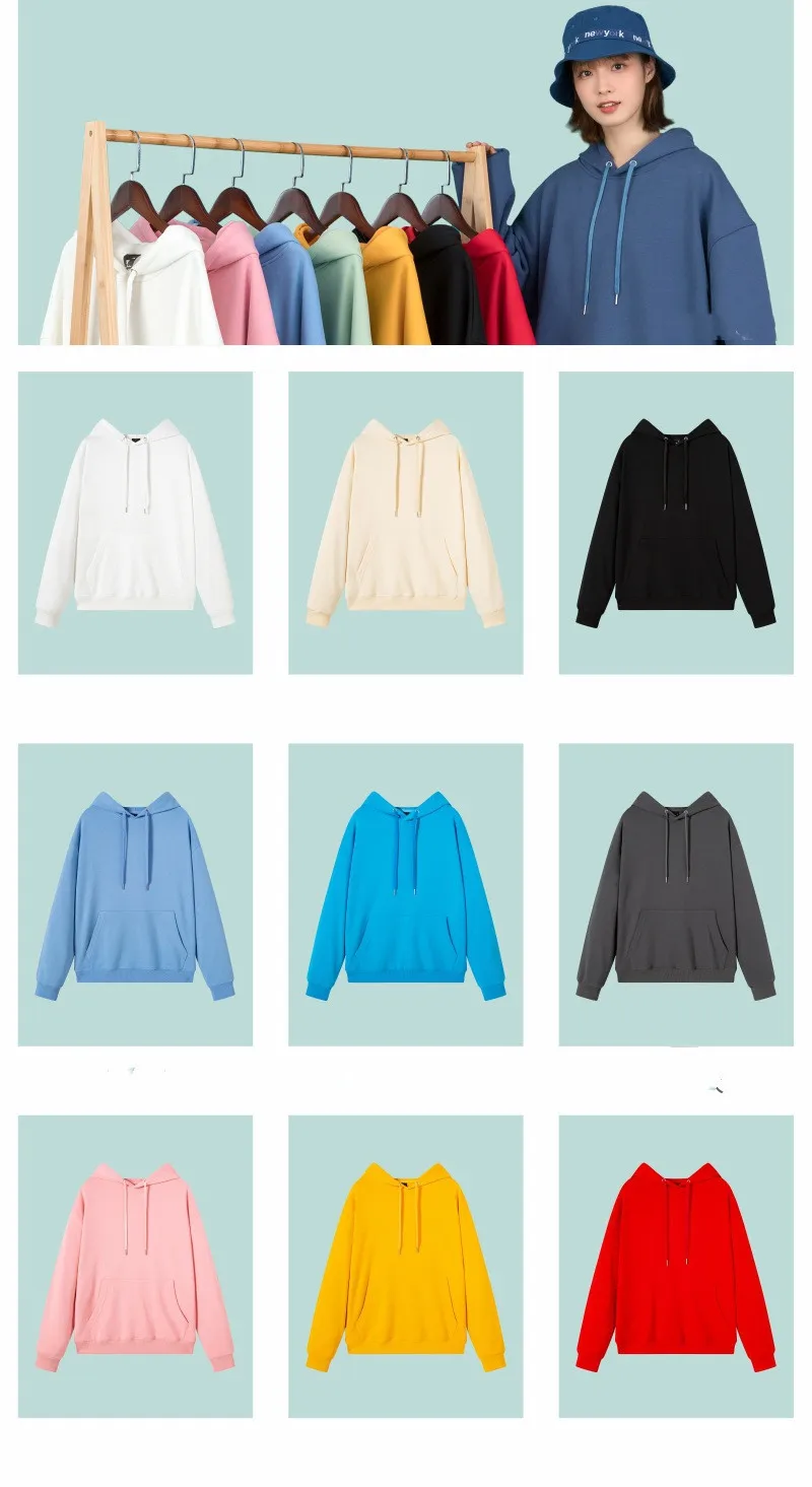 Cool pullover unisex cotton hooded sweater solid color looped hoodies