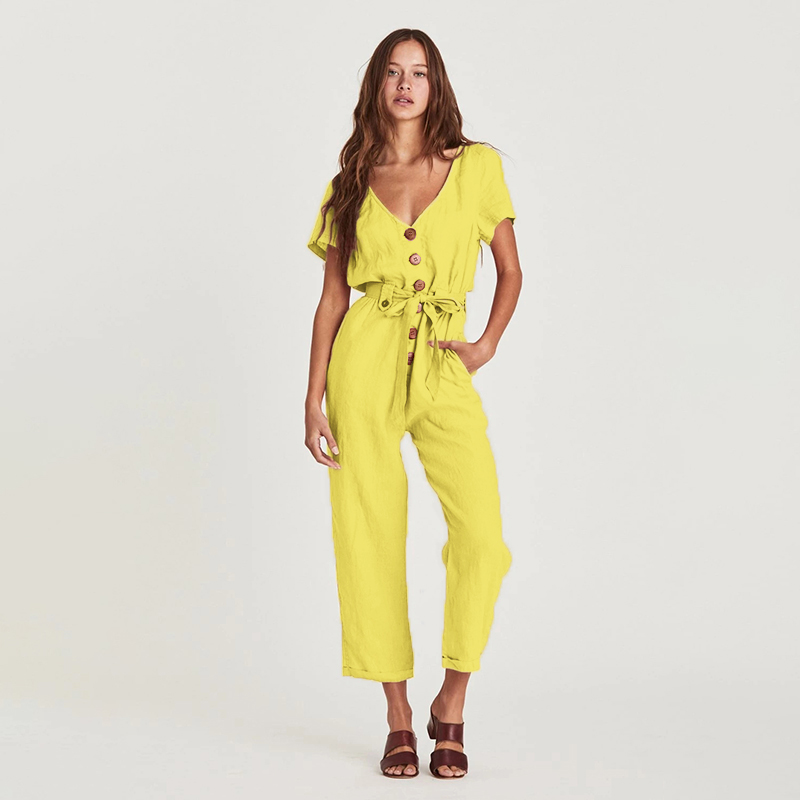 Fashion summer New Design Jumpsuit V Neck short sleeve Womens One Piece Jumpsuits Rompers
