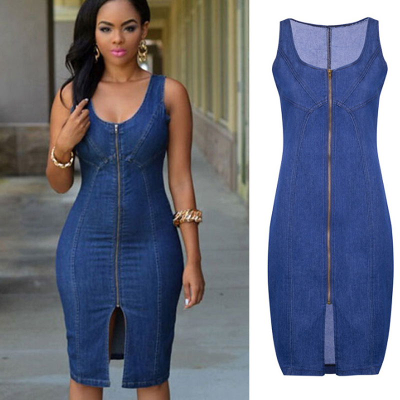 New Fashion Women's Slim Bodycon Zipper Mini Denim Jeans Dresses Ladies