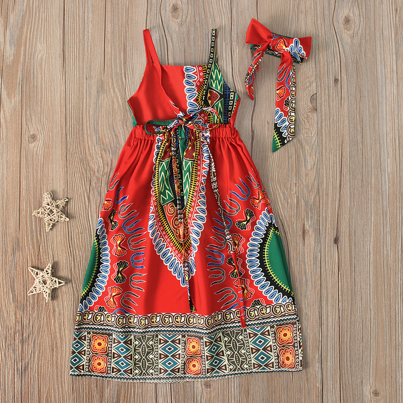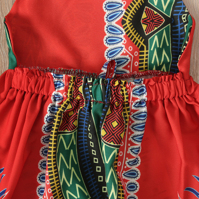 Newest European style pattern girls boho sleeveless kids long skirt children's clothing dress