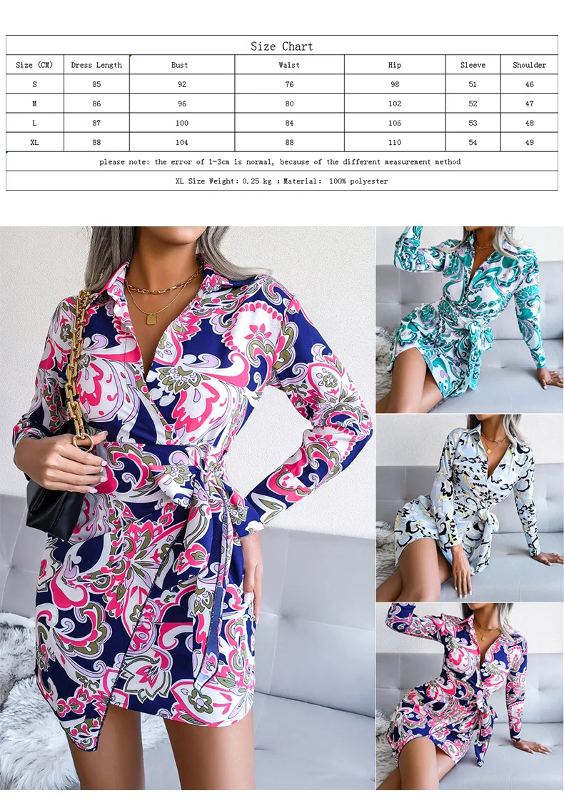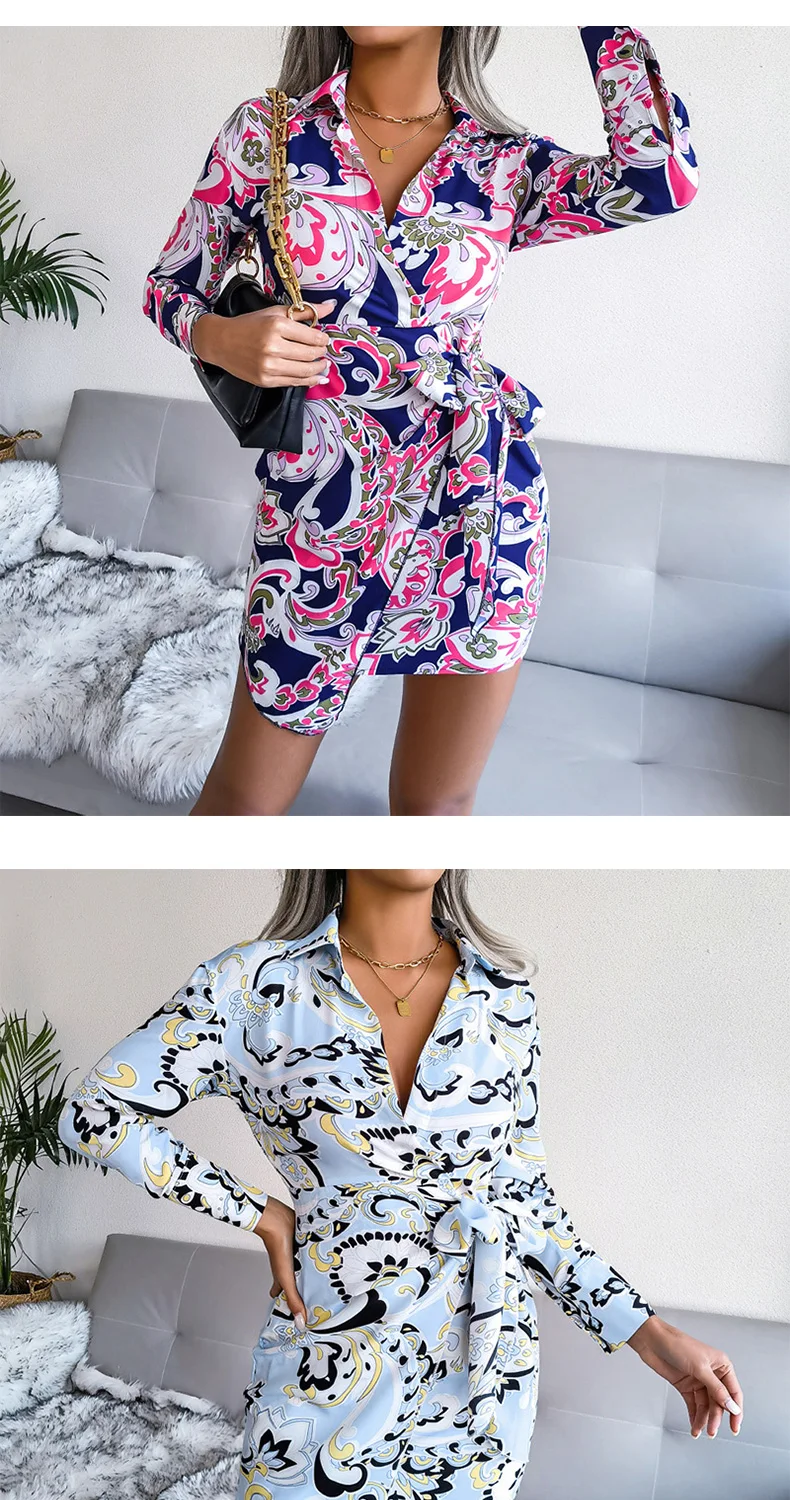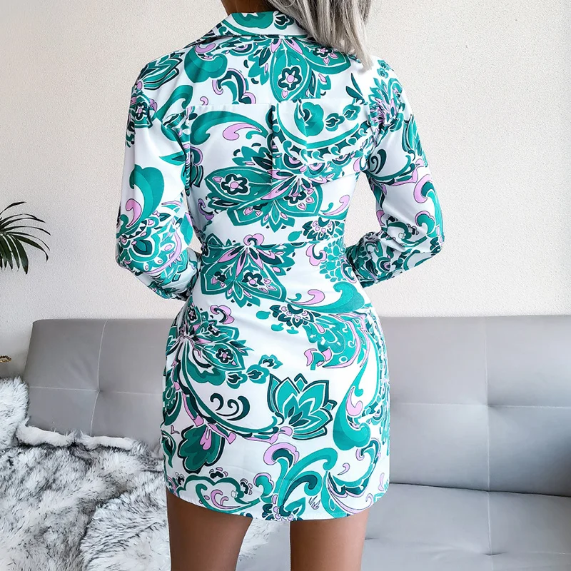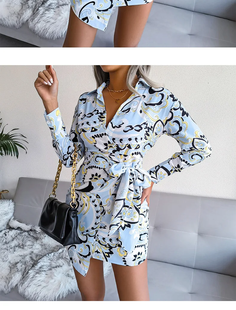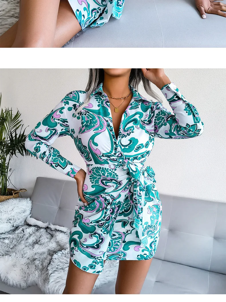 Spring and Summer Fashionable European and American Long Sleeve Printed Casual for Shirts with Dresses