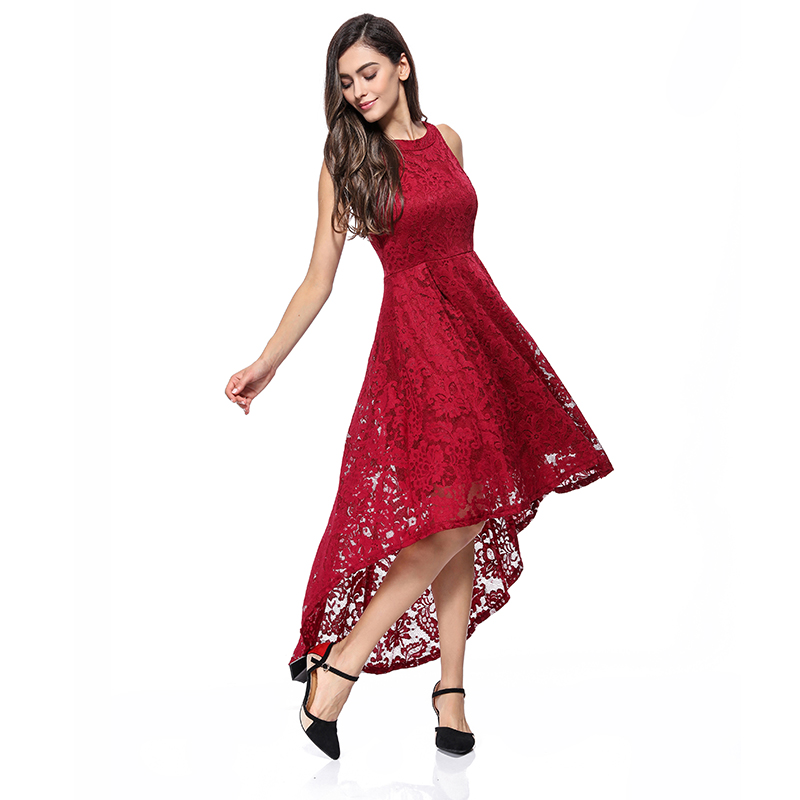 Stand Neck Summer Sexy Slim Party Dress White Lace Fashion O-Neck Sleeveless Dress