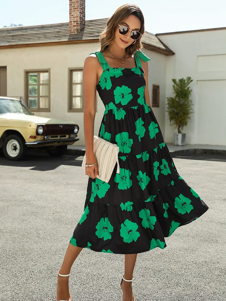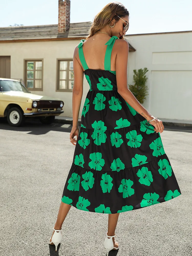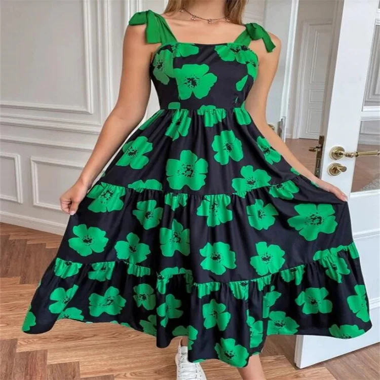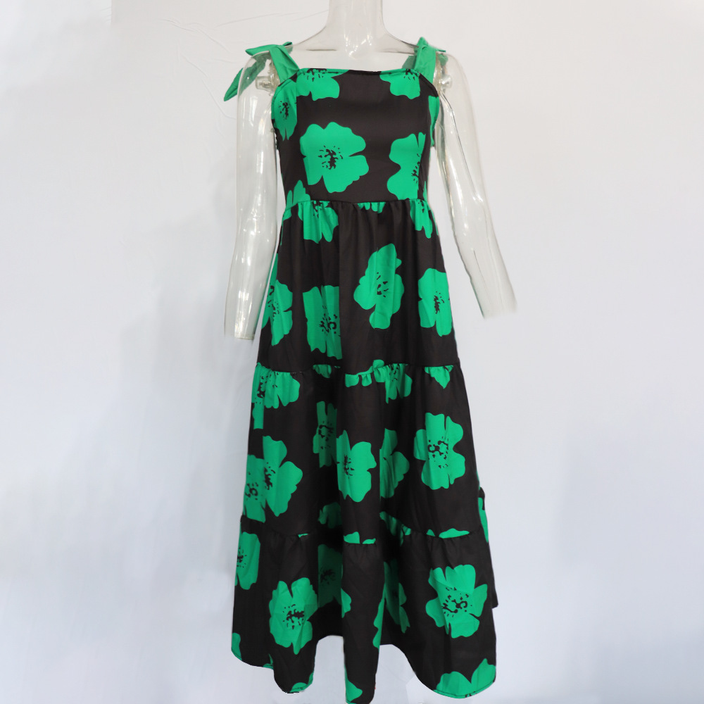 Wholesale Cheap Factory Price Beach Dresses Women Summer Boho Suspender Dress Floral Fabrics Dresses