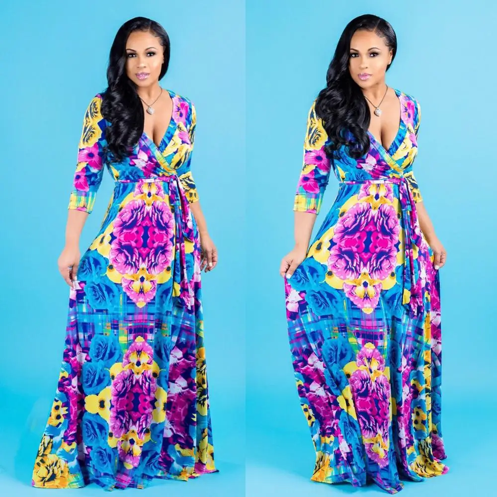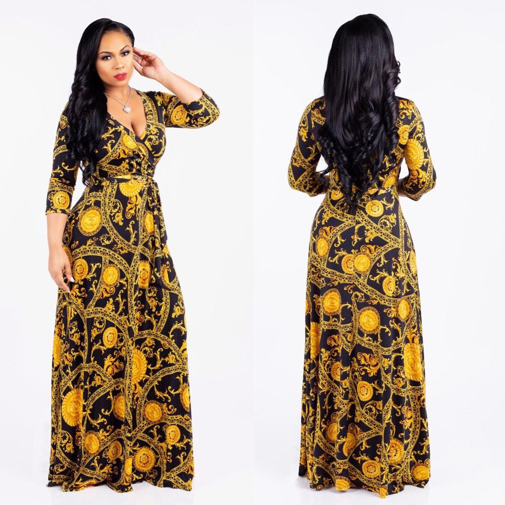 Wholesale new print long sleeve big swing dress kneth length plus size dress