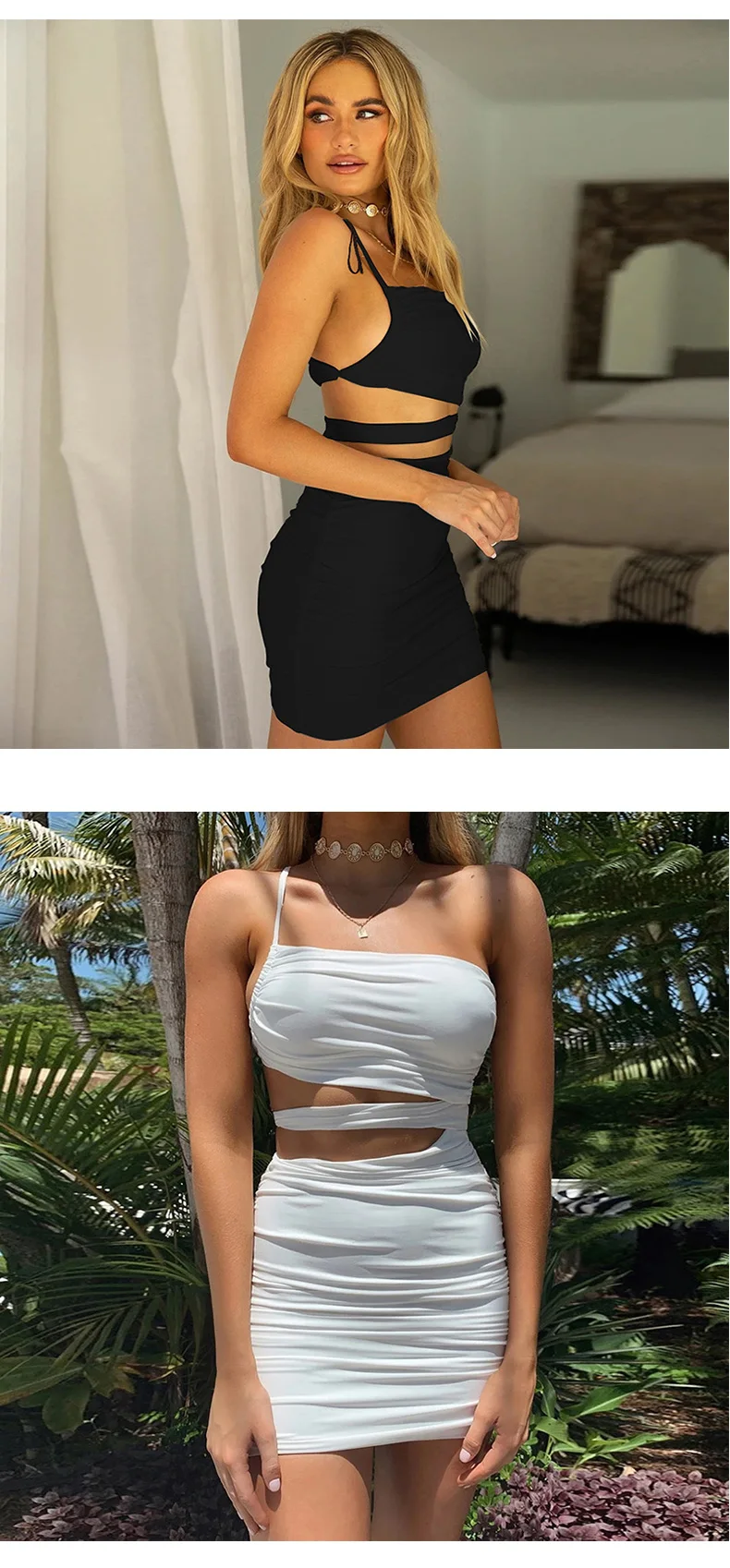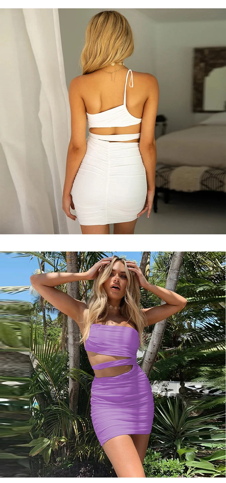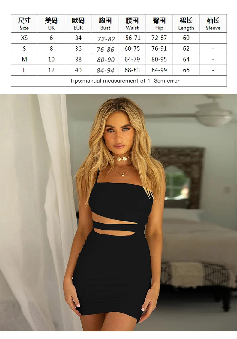 Wholesale One-Shoulder Asymmetric Sleeveless Summer Sexy Hollow Out Bodycon Mini Dresses
