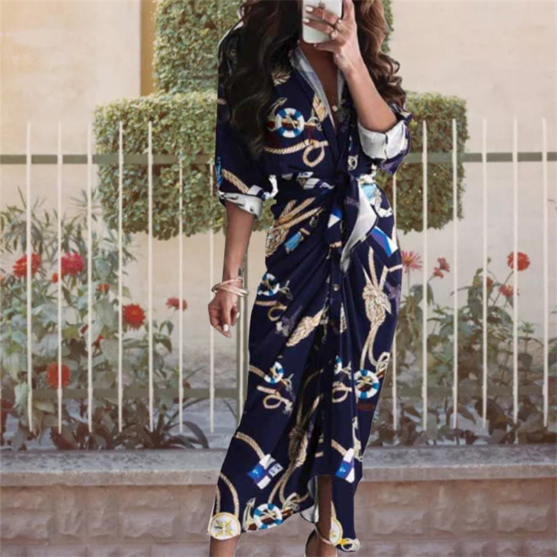 Women's fashion printed bandage party elegant office ladies shirt casual clothing long women dresses